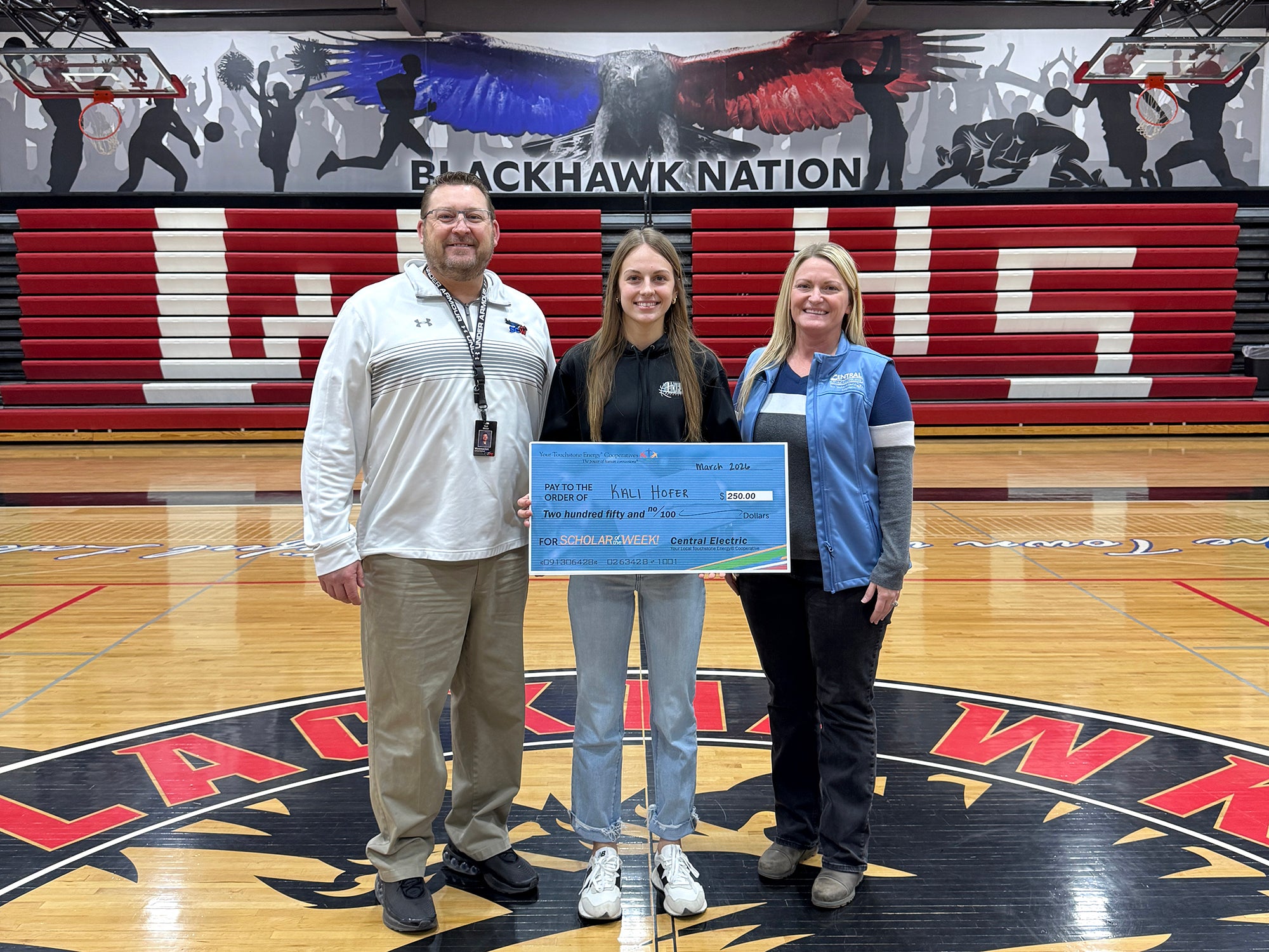 Central Electric Manager of Communications Tara Miller said, “Kali demonstrates strong character and commitment to her studies. Her academic accomplishments and community involvement make her a deserving Scholar of the Week.”
