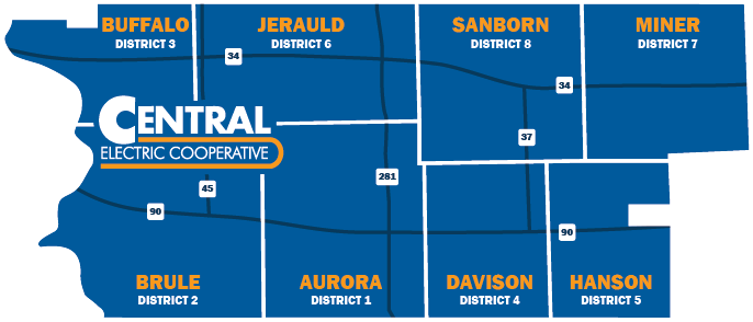 Members residing in Aurora, Brule or Buffalo County with an interest in serving on the Board of Directors may take out a nominating petition at Central Electric Cooperative's Betts Road office west of Mitchell. See the petition filing dates provided below.