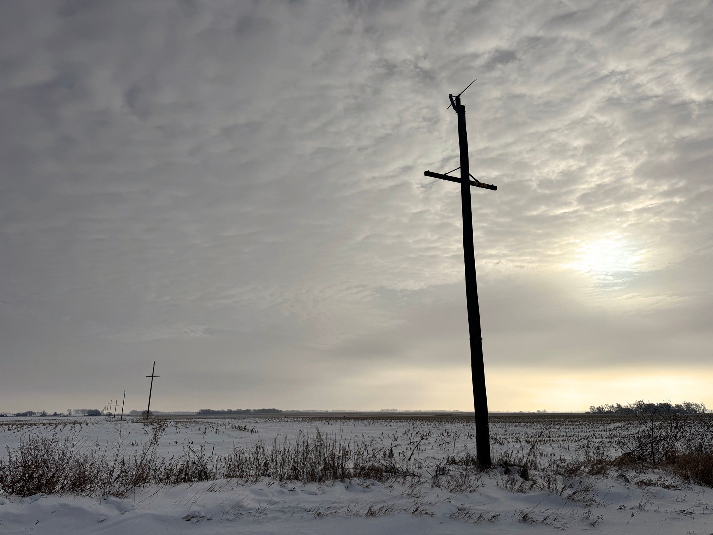 Over the past several years, East River Electric has invested in system improvements by upgrading and replacing transmission lines originally constructed in the 1950s. Pictured above is a transmission line near Interstate 90 northwest of Alexandria being decommissioned in December 2025. This is one of the final sections of original 1950s-era line to be replaced within Central Electric’s service territory.